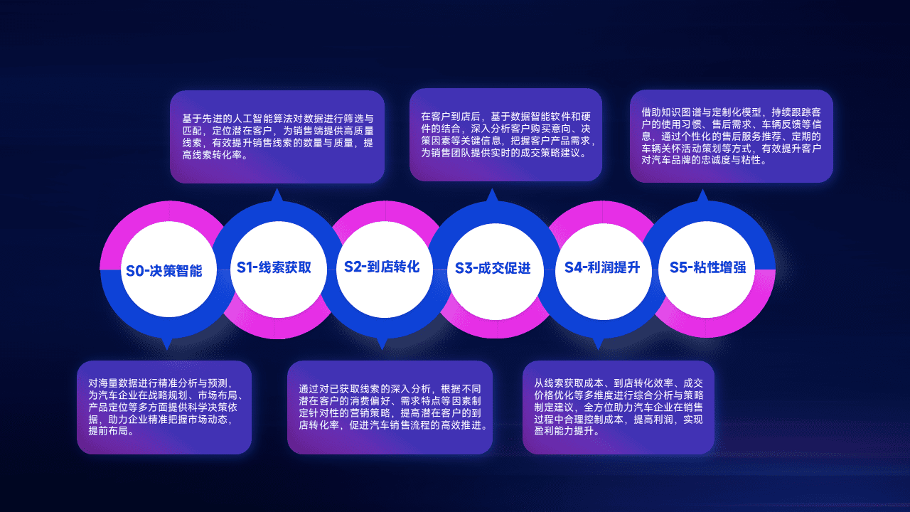 通过拓宽潜在客户来源、、、优化线索分配并提高到店转化率,,,以增强销售效率。。。。同时,,,利用线索数据不断优化分析模型,,,有效提升转化率,,扩大营销影响力。。。。